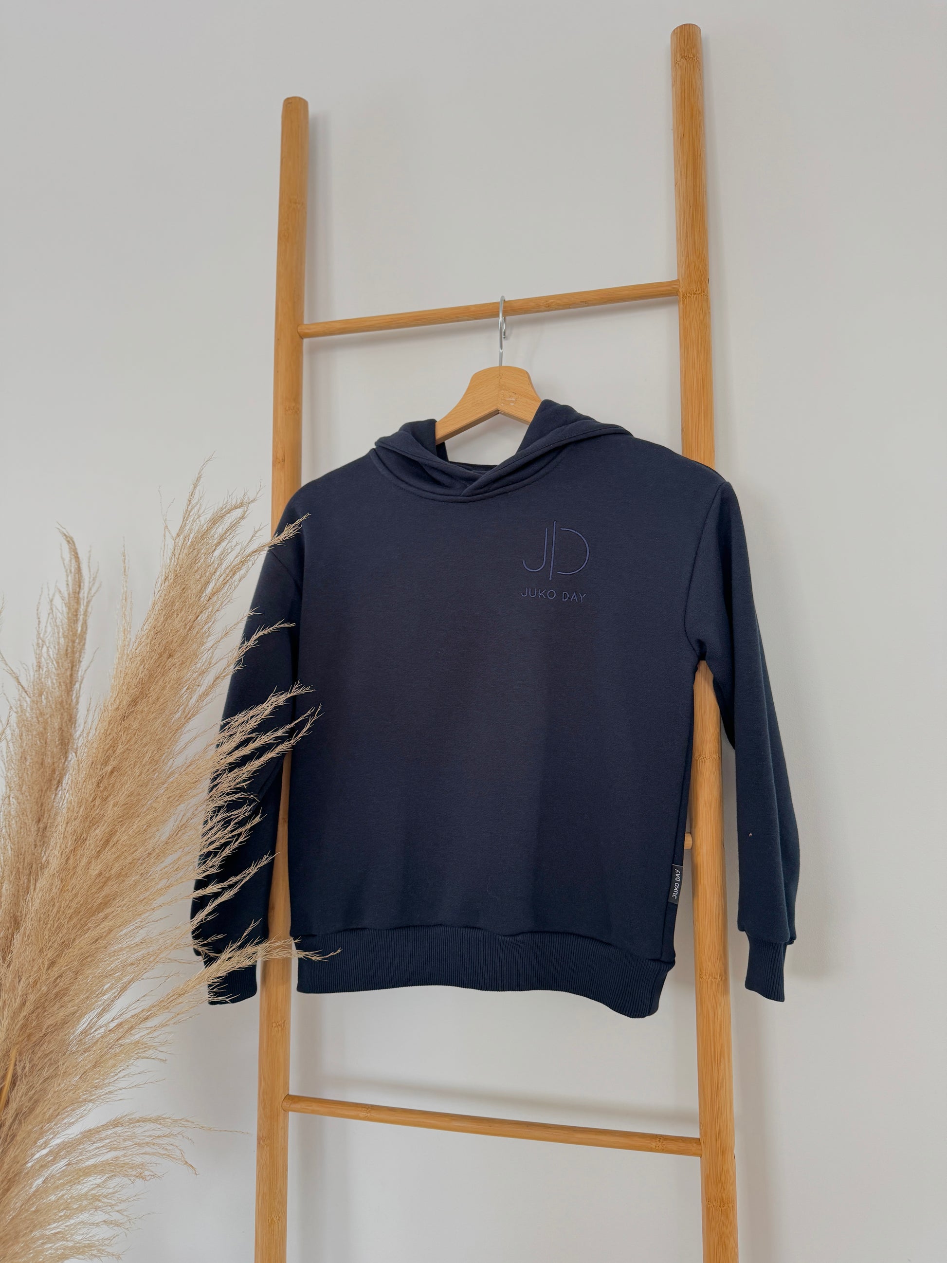 Su gobtuvu. Minimalus siuvinėjimas. Tamsi navy spalva.