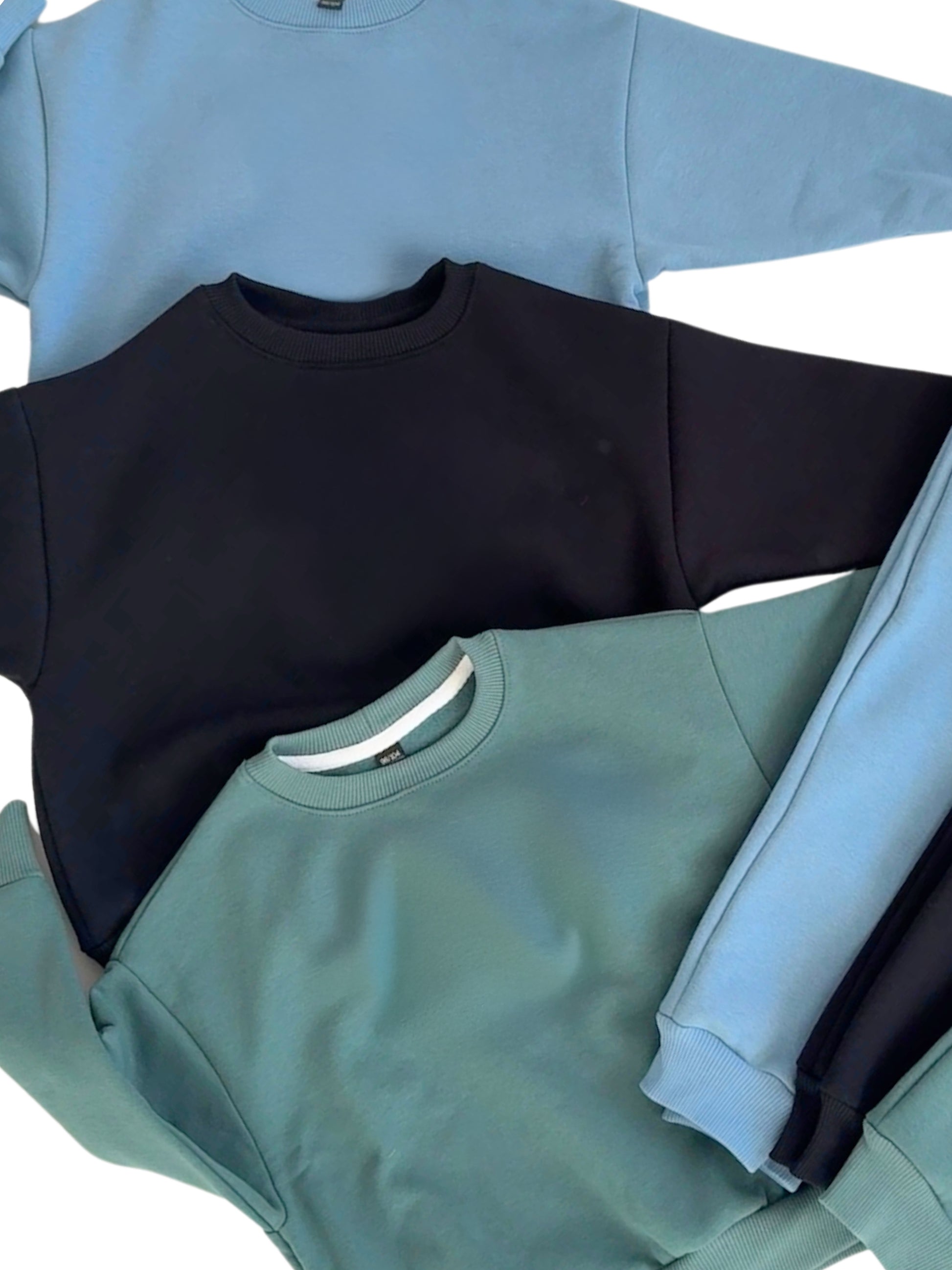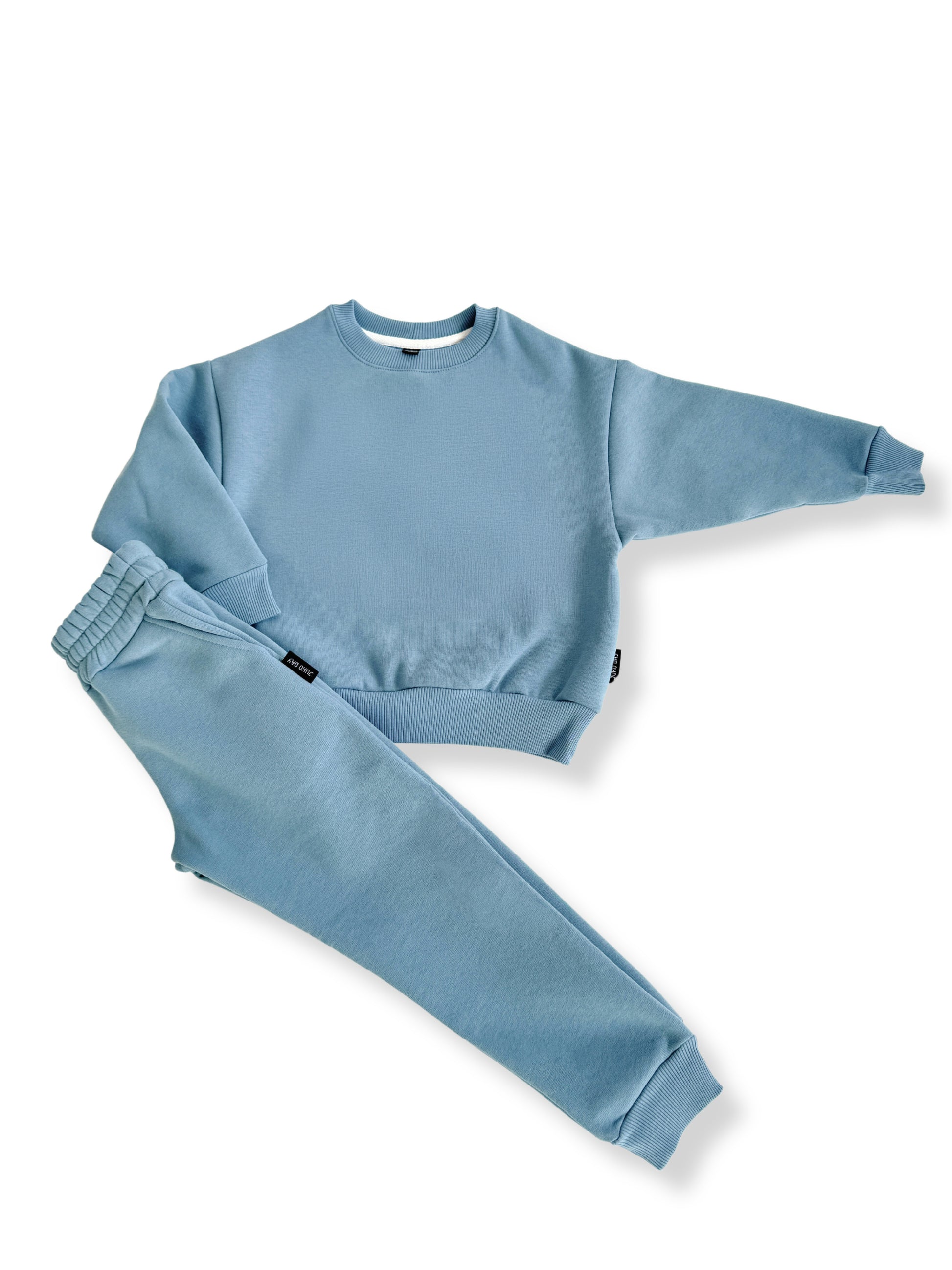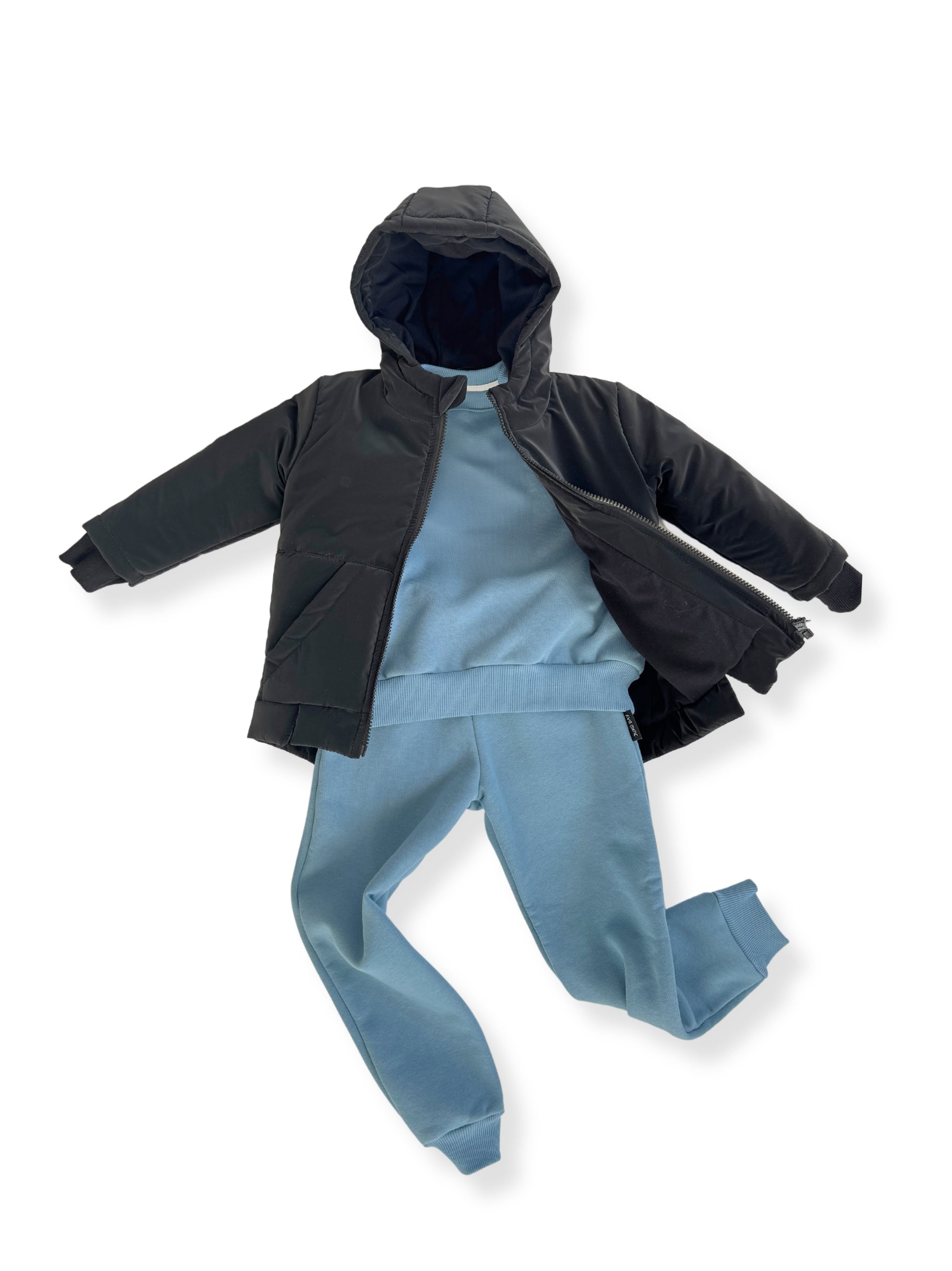 Melsvos spalvos vaikiškas kostiumėlis su storu pūkeliu