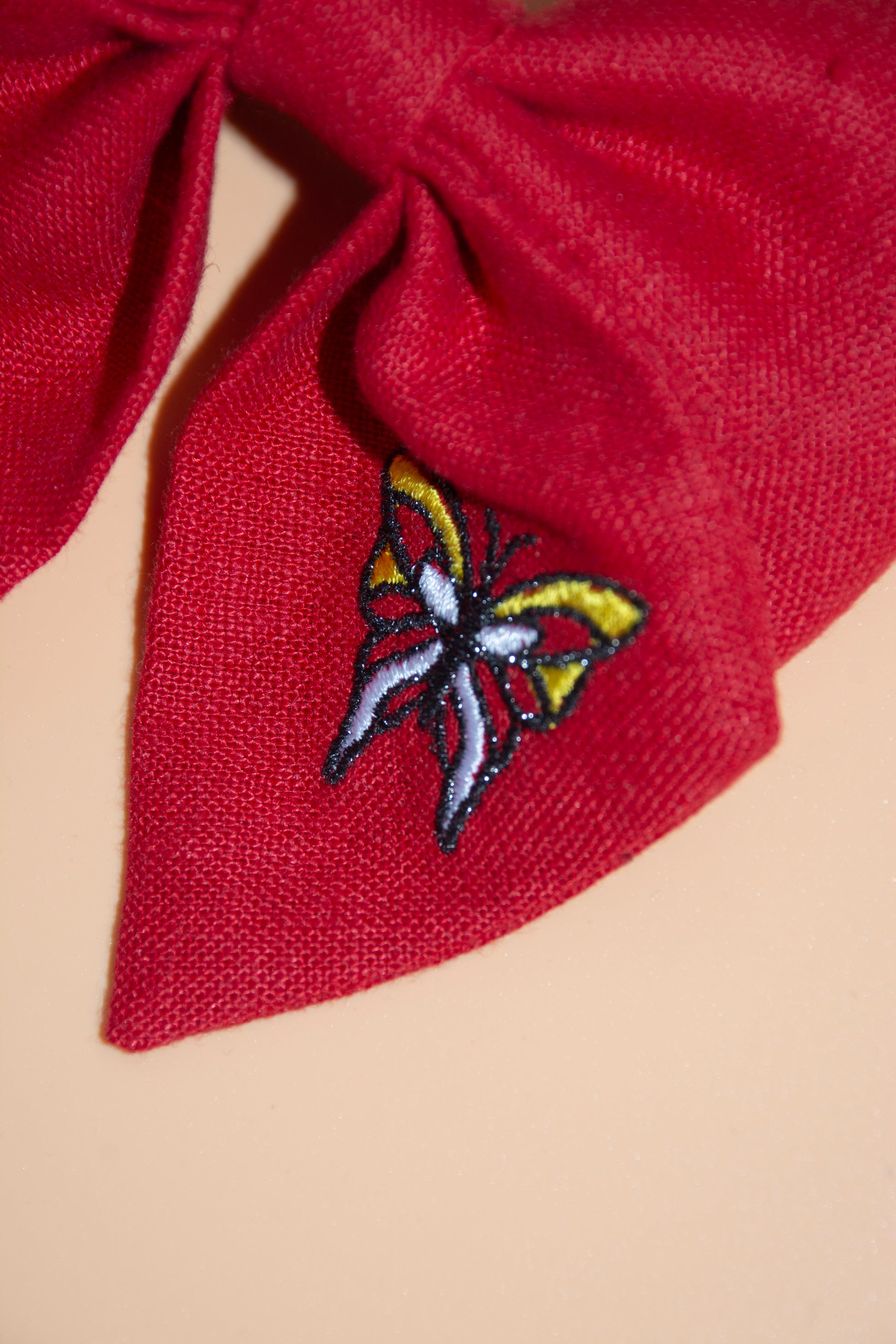 Siuvinėtas drugelio motyvas – kiekvienas kaspinas turi skirtingą detalę