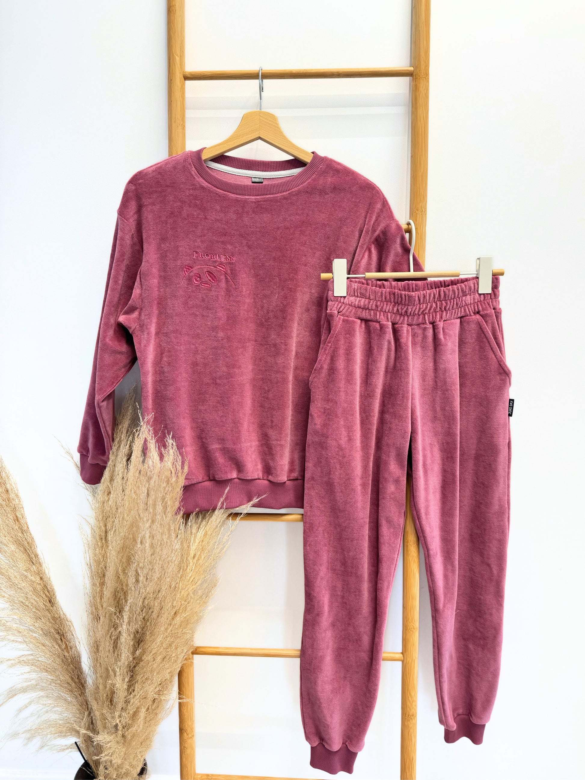 Vaikiškas kostiumėlis iš medvilninio veliūro su siuvinėjimu "PROBLEM" | 146-152