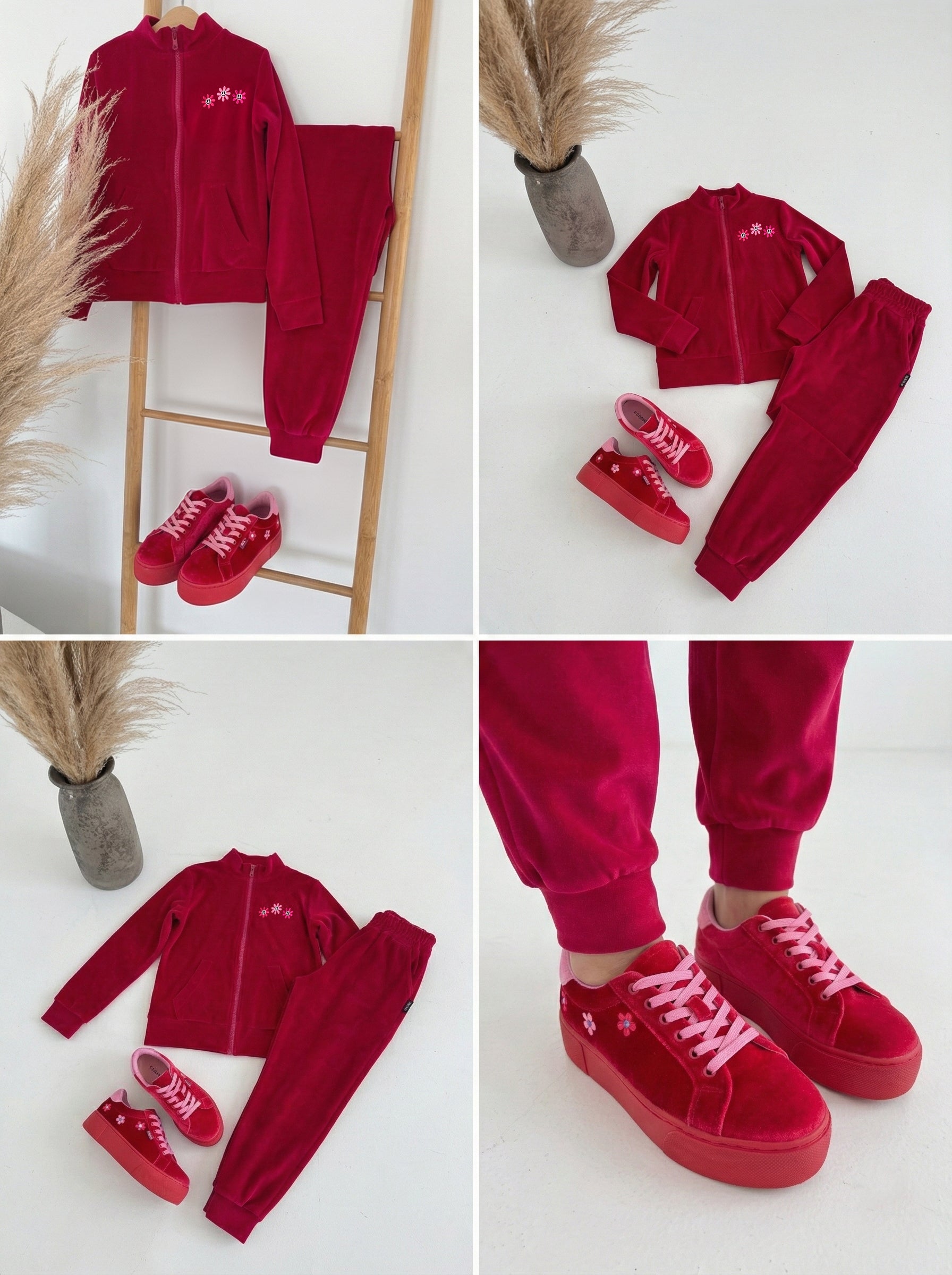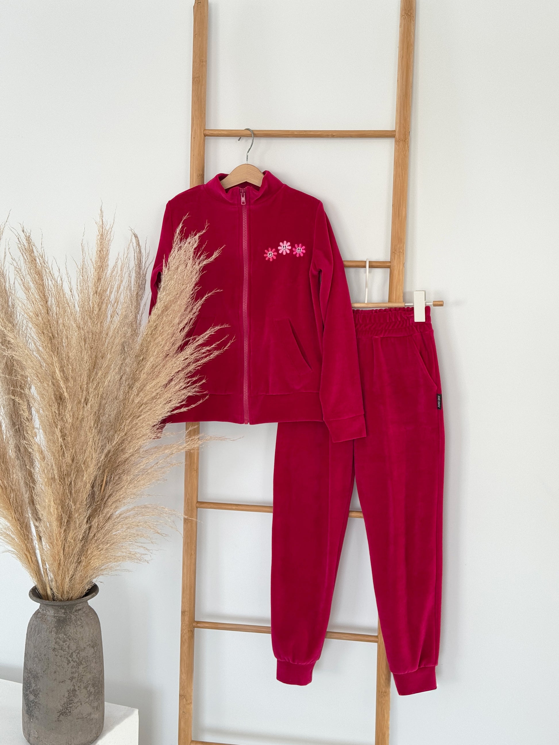 Vaikiškas, veliūrinis laisvalaikio kostiumėlis "Happy flowers"