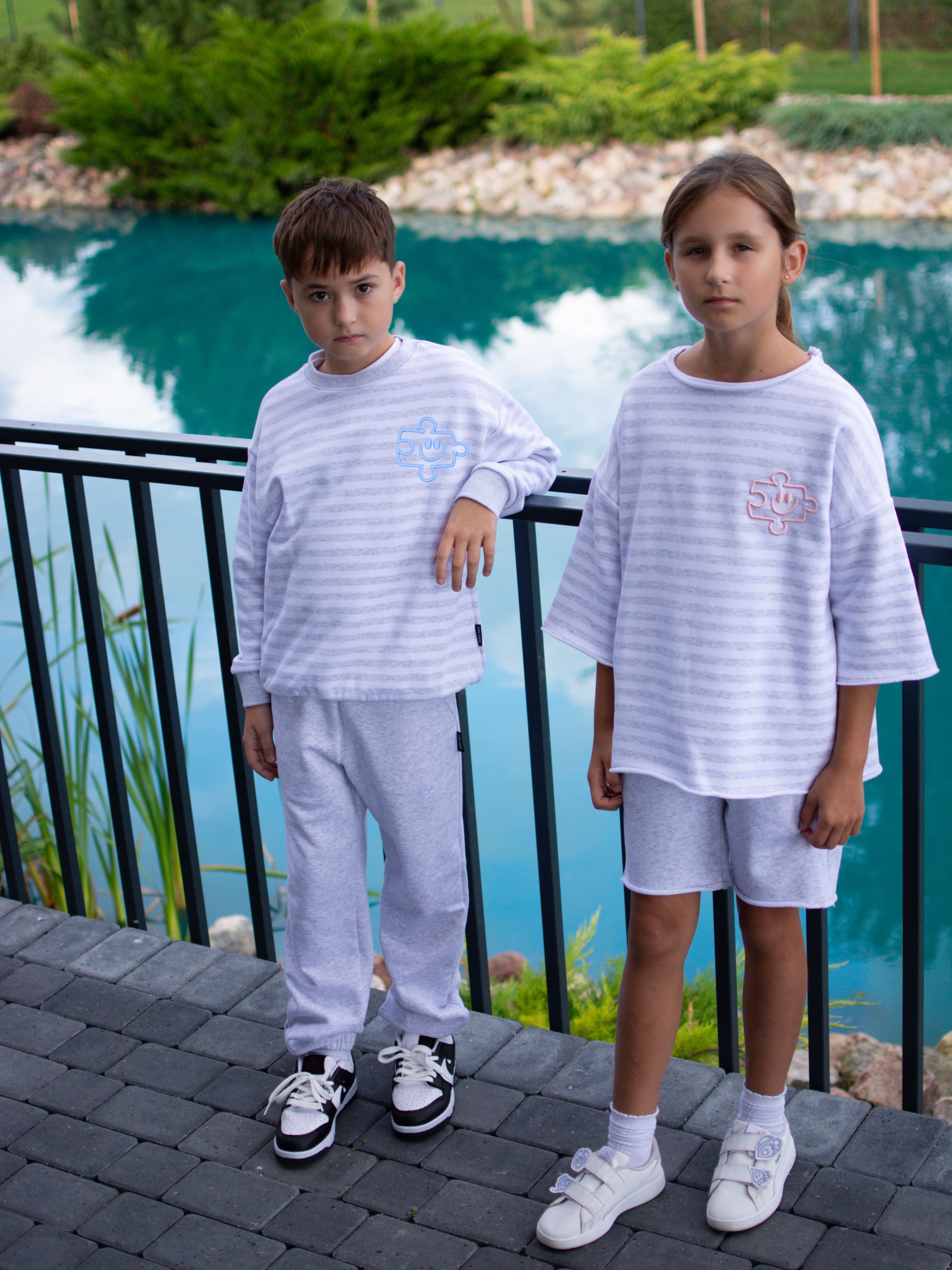 Vasarinis pilko melanžo spalvos vaikiškas kostiumėlis