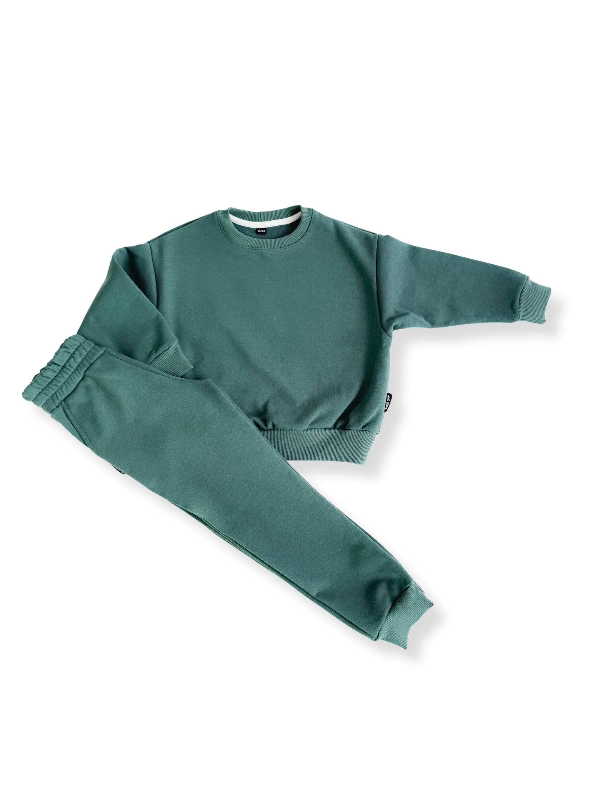 Žalsvos spalvos vaikiškas kostiumėlis su storu pūkeliu
